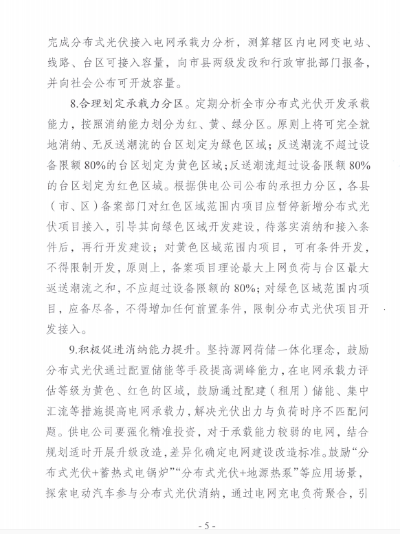 日前,揚州市發(fā)改、自規、住建、城管、農業(yè)農村、應急管理、行政審批、供電公司等部門(mén)聯(lián)合下發(fā)《關(guān)于進(jìn)一步規范我市分布式光伏項目建設管理的通知》,重點(diǎn)圍繞分布式光伏建設準入標準、優(yōu)化前期管理手續、提升并網(wǎng)接入服務(wù)、規范并網(wǎng)管理和加強合規運行監督五個(gè)方面,明確了具體舉措。