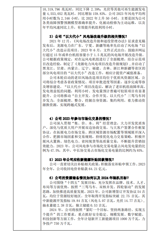 4月8日,龍源電力發(fā)布投資者關(guān)系活動(dòng)記錄表表示,2023年,龍源電力新增控股裝機容量4509.83兆瓦,其中風(fēng)電1562.55兆瓦,光伏2947.28兆瓦。