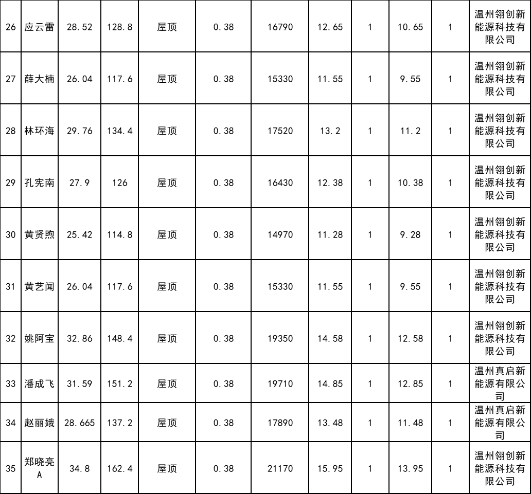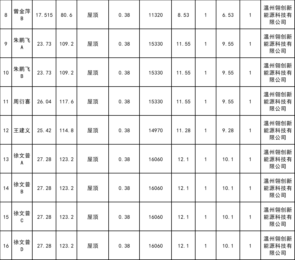 附件:樂(lè )清市2024年第六批居民家庭屋頂分布式光伏發(fā)電項目表