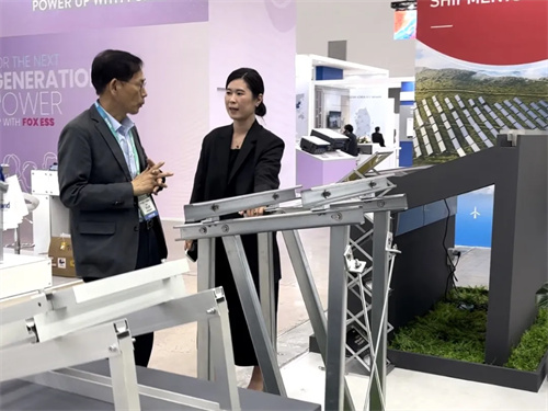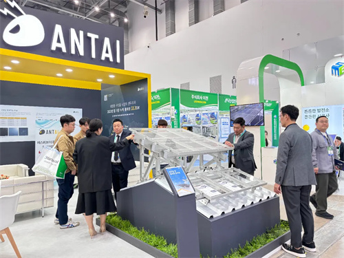 為更好地滿(mǎn)足韓國光伏市場(chǎng)的多樣化需求,安泰新能源展出多款專(zhuān)為韓國市場(chǎng)量身定制的光伏支架解決方案,包括地面碳鋼固定支架、屋頂三角架、屋頂架高及平鋪方案。在工商業(yè)應用場(chǎng)景中,重點(diǎn)展示架高屋頂支架系統,其卓越的結構設計和鋁合金主體材質(zhì)的輕便耐腐蝕性能,完美匹配分布式光伏屋頂,兼具系統整體強度又滿(mǎn)足屋頂承重,收獲參觀(guān)者的一致認可和好評。