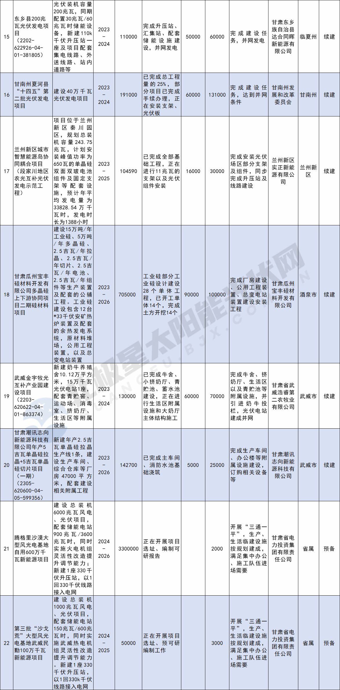 北極星太陽(yáng)能光伏網(wǎng)獲悉,2023年12月22日,甘肅省發(fā)改委發(fā)布關(guān)于征求《甘肅省2024年省列重大建設項目投資計劃(草案)》意見(jiàn)的函,經(jīng)梳理統計,共涉及11個(gè)光伏項目,總投資額達1232.329億元。項目詳情如下: