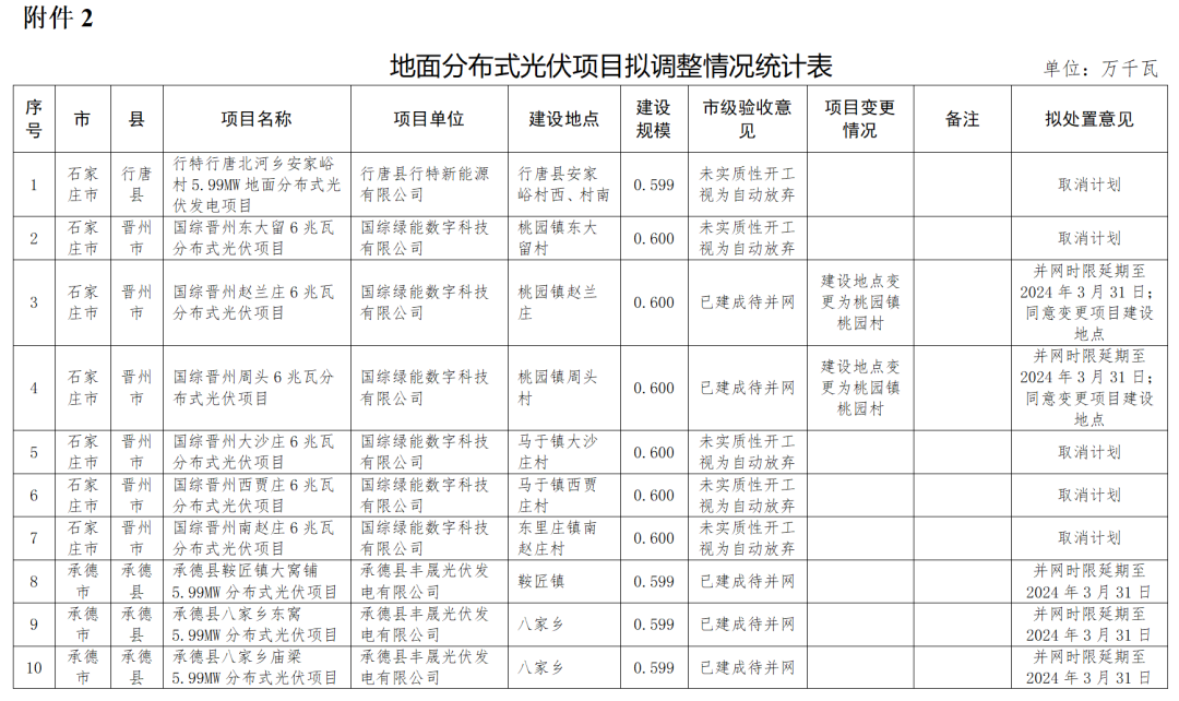 2.地面分布式光伏項目擬調整情況統計表