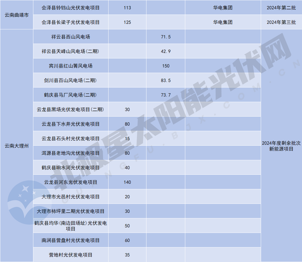 據北極星統計,自2025年開(kāi)年以來(lái),云南楚雄州、保山市、大理州、臨滄市、昭通市、曲靖市、德宏傣族景頗族自治州、瀘水市,8個(gè)州市共發(fā)布了6496.2MW的新能源項目清單,涵蓋光伏與風(fēng)電兩大領(lǐng)域。其中,光伏項目規模達5319.9MW,風(fēng)電項目規模為1176.3MW。