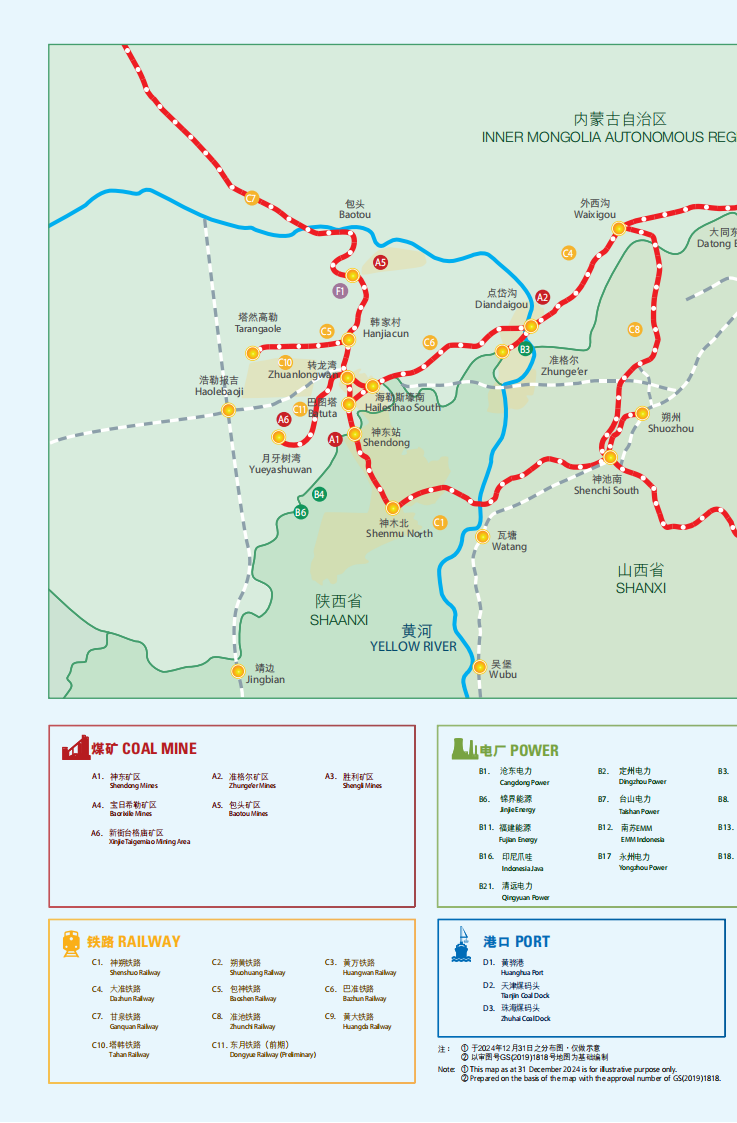 以下為中國神華2024年運營(yíng)數據概覽和主要資產(chǎn)分布圖: